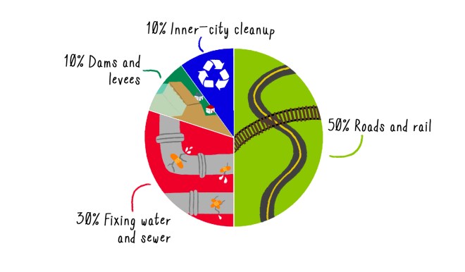 What would get built under Trump’s let-it-pay-for-itself plan? A bunch of toll plazas, basically, Marohn says. So, instead of asking what will happen under Trump’s infrastructure proposal (sigh), we asked the wide range of experts we talked to what should happen. What would they do with $1 trillion to spend on the country’s corroded pipes, crumbling bridges, and iffy transit systems? Here are their wishlists, as told to Grist.