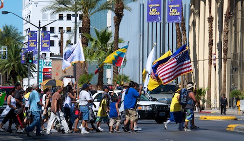 The Sierra Club was proud to support the Moapa Band of Paiutes on their three-day, 50-mile cultural healing walk from their reservation to the Lloyd George Federal Building in Las Vegas in order to bring visibility to the damage that the Reid Gardner coal-fired power plant is doing to the tribe’s health, culture and economy. In the 50-mile march, tribal members and supporters from tribal nations across the Southwest walked from their homeland to the doorstep of federal decision makers.