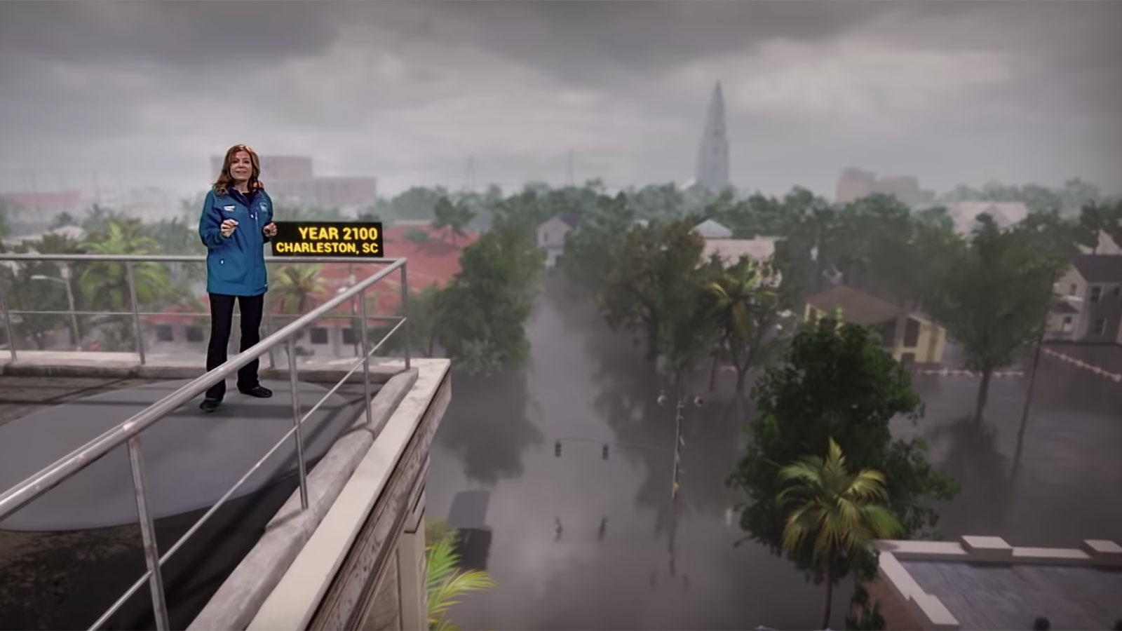 And, in this latest video, they do. Instead of regurgitating statistics or presenting another doomsday scenario, the video portrays global warming in a gripping yet realistic way, transporting you from a rooftop above flooded city streets to a rocky coast in front of a collapsing iceberg. Carfagno takes you from 1851 to 2100, visiting Charleston, South Carolina; Norfolk, Virginia; and Greenland’s famous Jakobshavn Glacier — all in the span of under two minutes. How’s that for high-speed time travel?