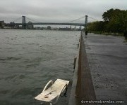 At 8:42 a.m. on Sunday morning, close to the peak of an unusually tall high tide, the water reached 4.8 feet above the average high tide level, as measured by a gauge at the Battery. It was the sixth-highest level ever recorded for New York Harbor. The tallest mark came in 1821, at 6.5 feet. The most recent incident topping Irene was the December Nor’easter of 1992, which reached about one inch higher at the Battery and caused enough area flooding to shut down the entire subway system and PATH for several days. Unless the city has substantially raised its defenses, 4.8 feet put Irene in risky territory.
