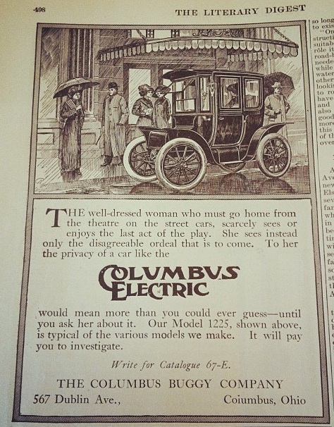 Electric car ad from 1912