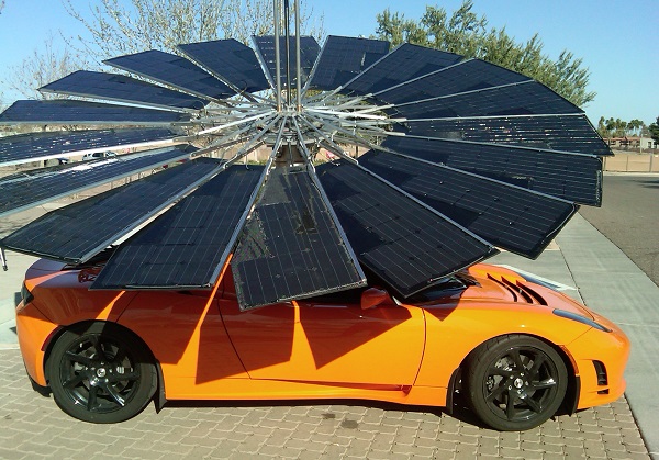 You can mount the Lotus Mobile on your electric car and charge your battery while you drive around (very carefully). You'd look extremely silly, but you COULD.