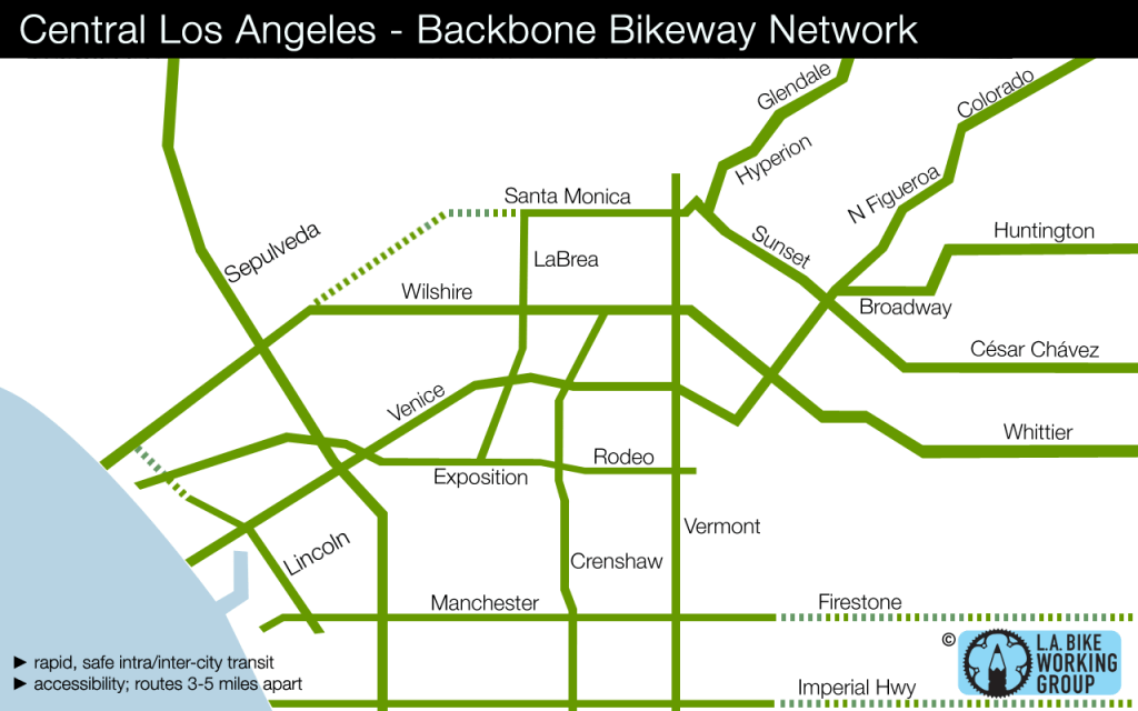 The Backbone Bikeway Network proposed by the L.A. Bike Working Group was incorporated into the city’s master plan for 1,680 miles of new bike lanes.Graphic: LA Bike Working GroupThe cab driver who cut off Los Angeles Mayor Antonio Villaraigosa when the mayor was riding his bicycle last year may have done the city a huge […]