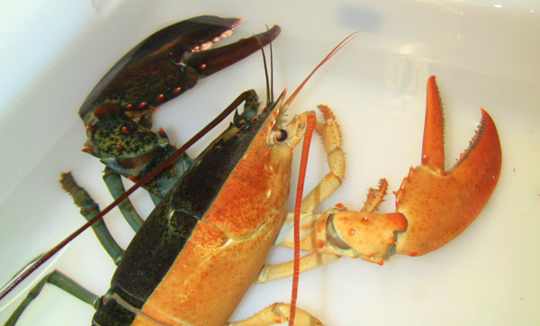 A half-black half-orange lobster was found in Massachusetts on Halloween.