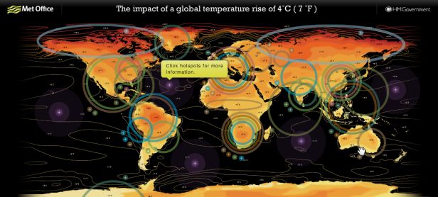 No need to waste your money on the new apocalyptic thrillers coming soon to theaters. A new world map released Thursday by the British government, and unveiled at the Science Museum in London, provides plenty of real life doom and gloom — and it’s free! The slick and colorful interactive graphic shows what a 4 […]