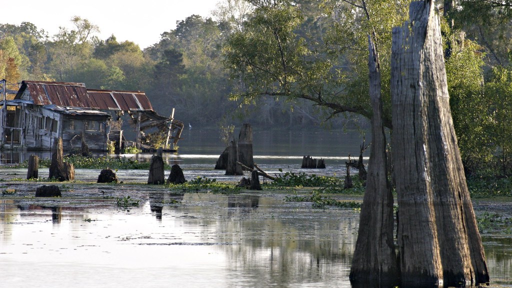 In Plaquemines Parish, the remaining land looks moth-eaten, chewed up by oil industry canals and the incoming waters of the Gulf of Mexico.