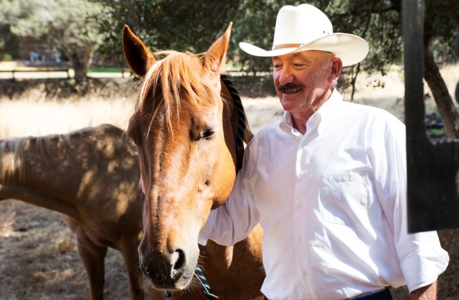 To get to Mitchell’s house you have to snake your way into a treed canyon, past neighboring goats and ducks and alpaca. A sign at the gate marks your entrance and it’s a fitting name — Ranch Forgotten. The place was in bad shape when Mitchell and Jan bought it — but they fixed it up, felled trees, cleared land for pasture, and now it houses rescue horses for the nonprofit Redwings Horse Sanctuary. The horses that come to Ranch Forgotten are often only there temporarily, fostered for a time before being sent to more permanent homes.