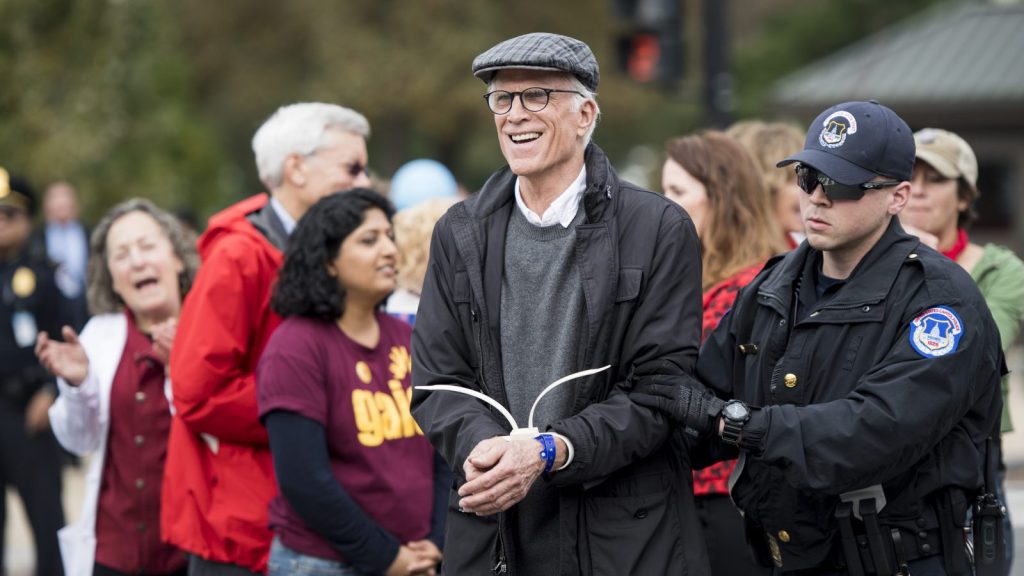 Coincidentally or not, some of The Good Place actors are calling this dynamic into question. Danson has been arrested for participating in Jane Fonda’s weekly protests of the climate crisis, and Manny Jacinto (who plays everyone’s favorite Florida Man, Jason Mendoza) has joined in, too. “Climate deniers are attempting to deflect our attention,” Jacinto said in a speech at a protest in November. “Rather than finding policy solutions, they’re highlighting the need for our individual changes … We cannot be taken in by this deflection campaign and must push for policy reform.”