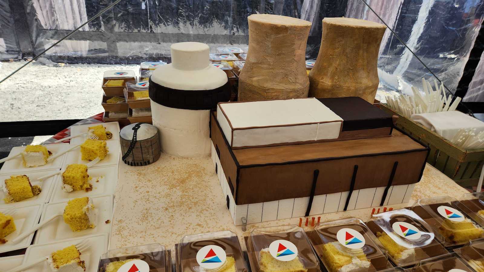 Triumphal arrangements of the national anthem, “God Bless America,” and “Georgia On My Mind” backed by a gospel choir bookended the celebratory speeches. Attendees could snack on a sheet cake model of the power plant rendered in fondant.