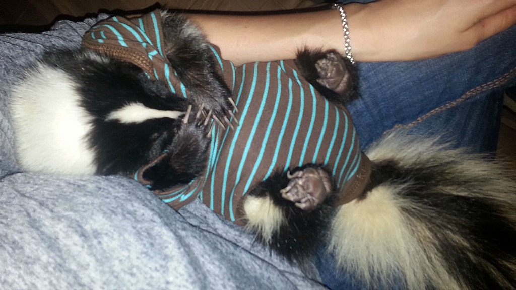 SQUEE! And before you worry about smells, the breeder had Stunky’s scent glands removed long before KalisCoraven got her, which sounds wise (but kind of sad). Before you run out and get a baby skunk of your own, KalisCoraven notes, “Keeping a skunk is not all flowers and roses, and they are a high-maintenance pet.” We’ll just settle for the adorable pictures.
