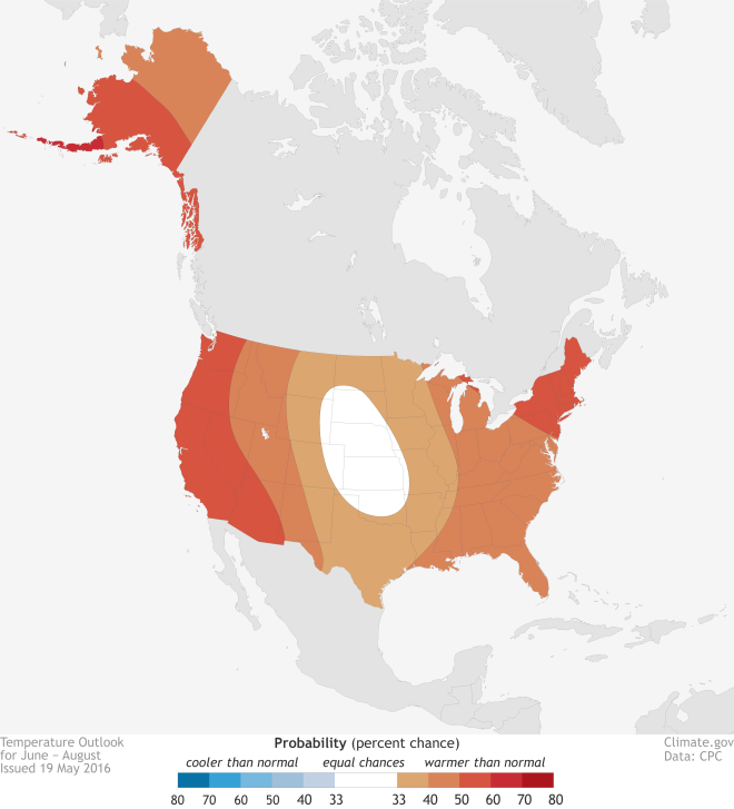 The National Oceanic and Atmospheric Association (NOAA) has released its outlook for summer temperatures, and, in the words of the American poet Nelly: It’s getting hot in herre.
