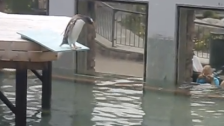 Watch a scared penguin get up the nerve to jump in the water