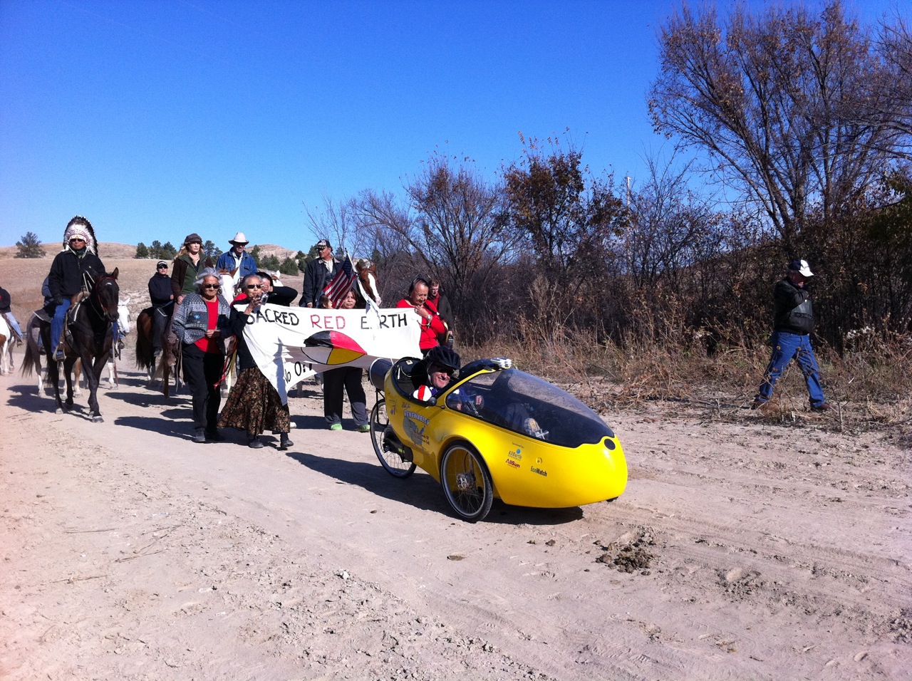 A. I was totally blown away by the solidarity march and rally we had courtesy of the Lakota Nation. I have never felt so warmly embraced by a community in my life. Rolling into downtown Pine Ridge, S.D., on my rocket trike, I was greeted by dozens of Oglala Sioux tribal members who had taken over the streets. It was a beautiful sight to behold … grandmothers holding banners, a youth drum group singing honor songs, men waving flags, and camo-clad youth providing security. It was an incredibly powerful experience. The horseback solidarity rides with indigenous leaders in Montana and South Dakota were also unforgettable. The Native wisdom of these people fills me with hope.
