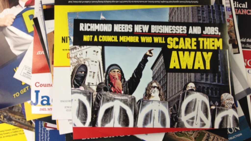 The campaigning continued right up until the end. Moving Forward, a political action committee funded primarily by Chevron, portrayed the RPA’s candidates as a group of commie troublemakers who couldn’t decide which they loved more, Cuba or Occupy Oakland. The morning of the election, a last-minute hit piece appeared in the Richmond Standard, a newspaper created by Sam Singer and Associates, a PR firm that often works with Chevron, alleging that “supporters of Team Richmond, candidates supported by the Richmond Progressive Alliance, have been harassing voters” at polling places.