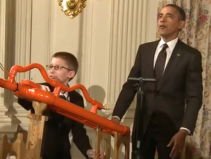 Sometimes, even when there’s a Democratic president, I worry about science policy — whether there will be sufficient funding for research and education, whether the administration is soliciting and heeding feedback from scientists on subjects like climate, that sort of thing. And then I see the genuine delight on President Obama’s face as he helps a tiny brainiac shoot a marshmallow cannon, and I worry a little less.