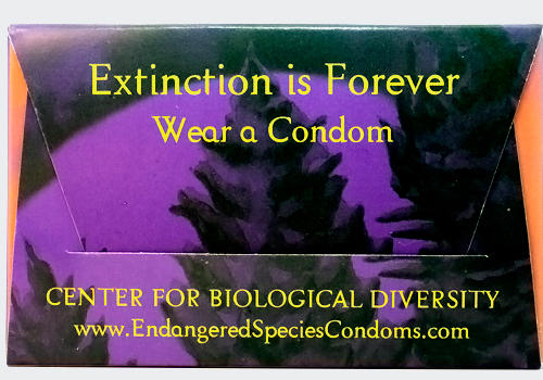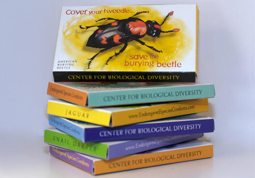 The condoms, which debuted last year, feature six different endangered species. With the help of intrepid volunteers, the Center for Biological Diversity gave away 350,000 of them in 2010.