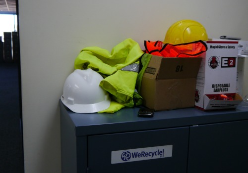 "Welcome to WeRecycle! This is the point of the tour in which we request all guests put on hard hats and hearing protection in case of robot uprising."
