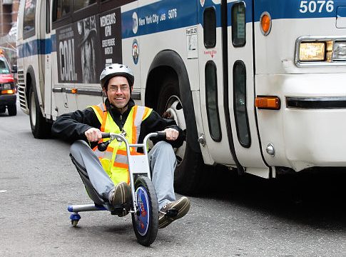 Watch a tricycle spank a bus in a low-speed race